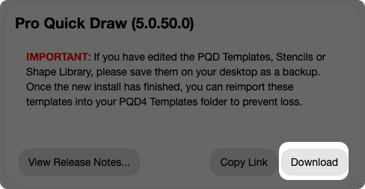 On the Download page you may have multiple downloads available based on what you or your team purchased - to download PQD click the Download button on the Pro Quick Draw page item