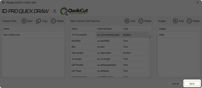- If this is a new installation you will be prompted to create a new column set, you would click NEW