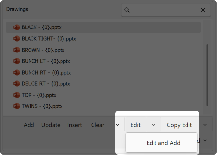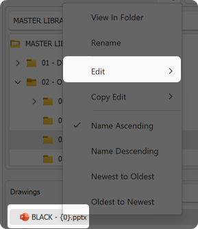 Now if you right click on a file and hover over Edit, you will see an Edit and Add selection - by selecting Edit and Add, you will see a new window appear where you can make your edits. However this time when you save and exit that window it will automatically add that drawing to a new slide or box within your template