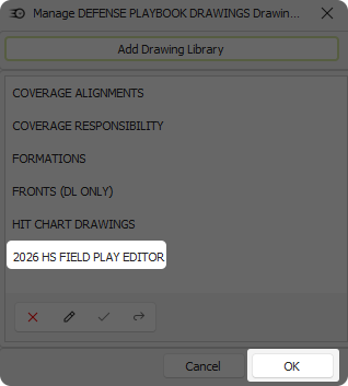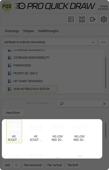You should now see the HS FIELD PLAY EDITOR library in your Play Editor library list. Select it, then at the bottom of Play Editor you will see the different field backgrounds. Simply double click on the field background you want to add to your slide and it will place it as the background on the slide