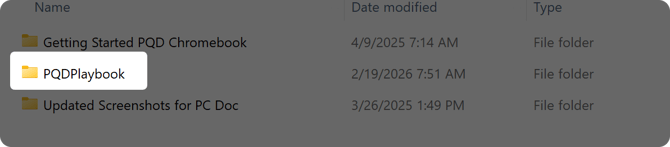 - Click and drag the PQDPlaybook folder into your Google Drive in My Drive.