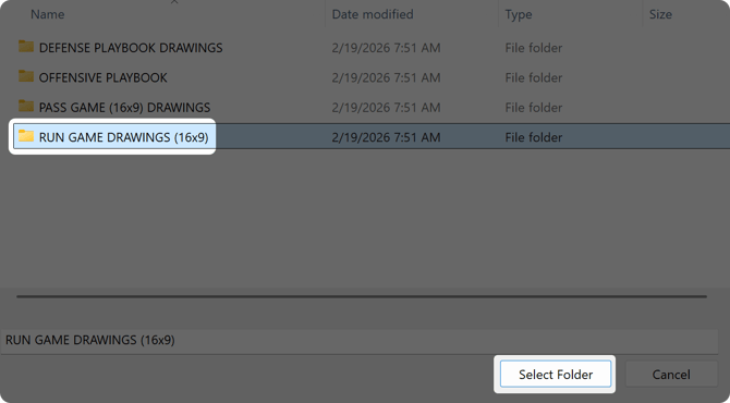- Select the Drawings folder you want to import and then click the Select Folder button