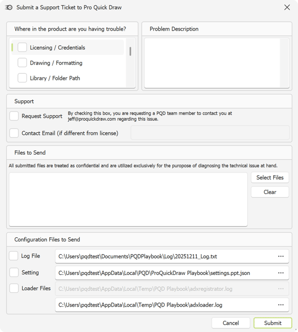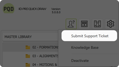 Within the Pro Quick Draw application, you can submit a support ticket.