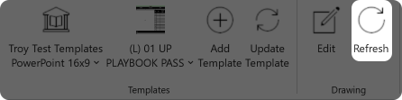 Using the Refresh feature on the ribbon bar allows to you ensure you have the most up-to-date version of the drawing in your template